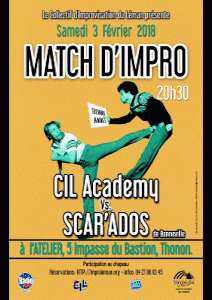 Après un mois de Février sous le signe de la relâche, nous sommes tous bourrés d’énergie, et prêts à vous proposer des spectacles qui vont vous donner une pêche d’enfer pendant tout le mois de mars. Et ça commence dès ce samedi ! Samedi 3 Mars – 20h30 : Match CIL vs Improtagonistes (Paris) à l’Espace …